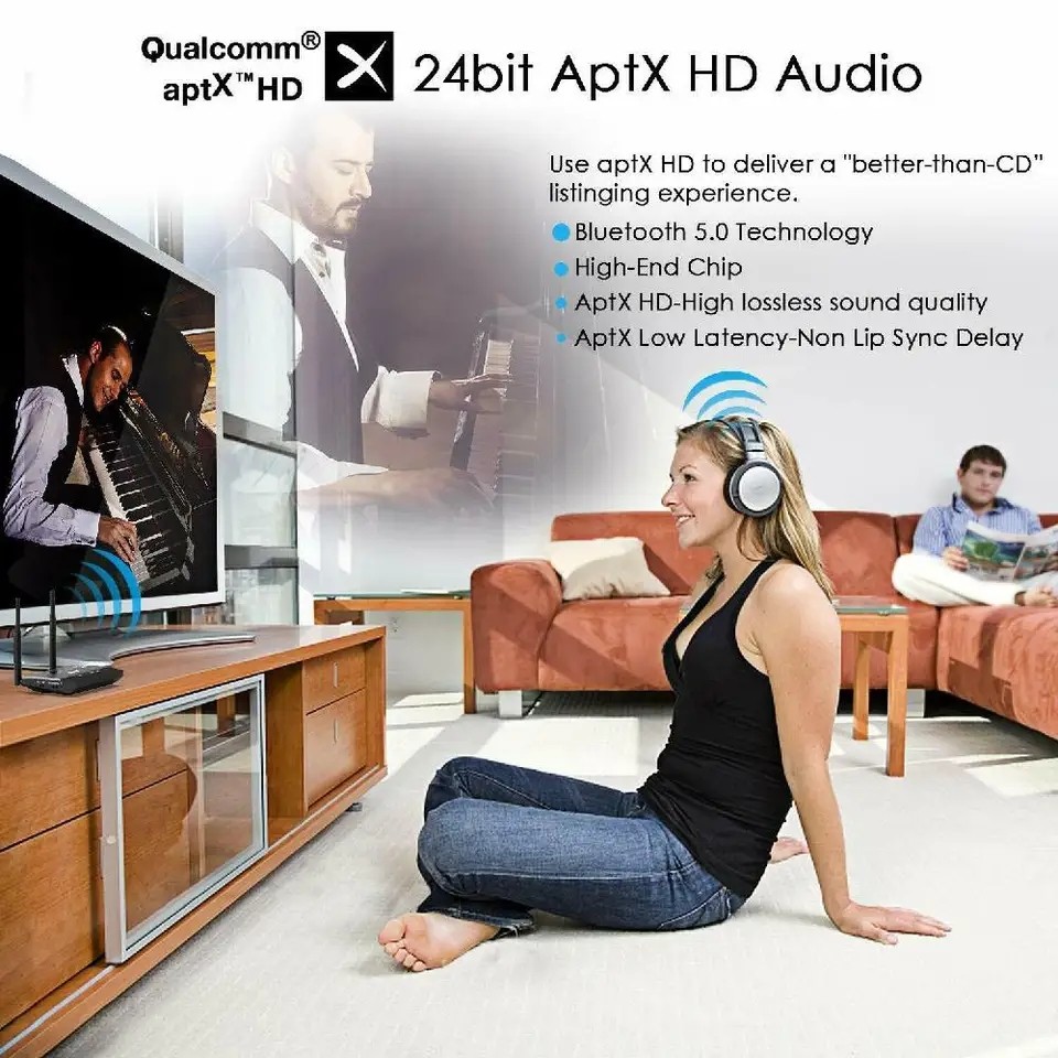No lip sync delay & Perfect Hi-Fi sound: AptX Low Latency technology eliminate Bluetooth audio delay, so you can enjoy high-clarity sound and watch TV / Movie / Video in perfect synchronization. aptX HD technology provide you perfect sound experience.