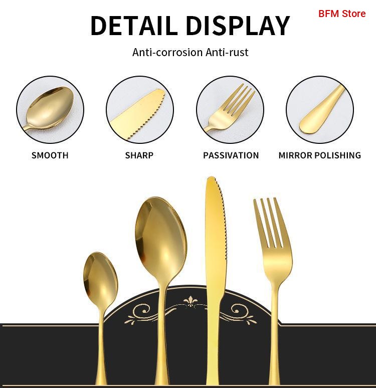• High-Quality Tableware Set: Made of durable stainless steel with a sleek mirror-polished finish. Rust-resistant and designed for comfort and long-term use.