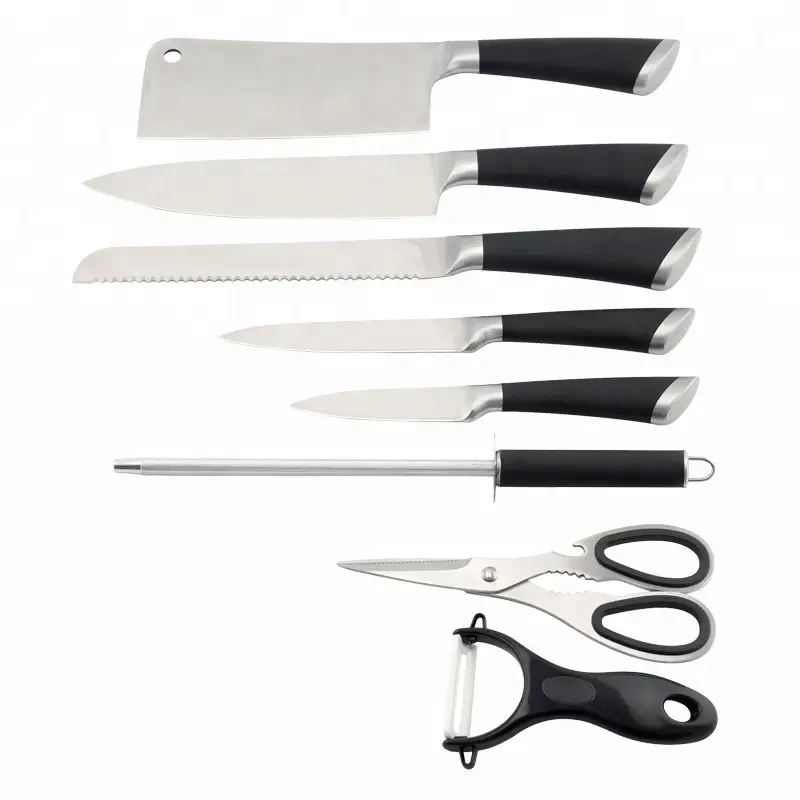 • Variety of Knives: This kitchen knife set typically includes a chef's knife, slicing knife, cleaver, paring knife, and utility knife, among others.
