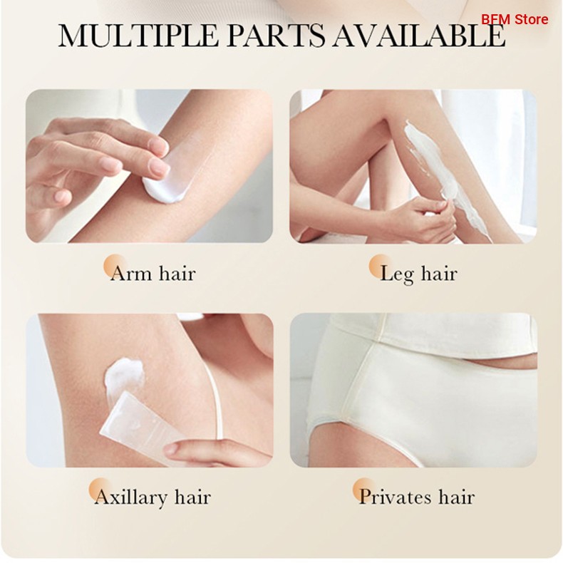 • Easy to use: just apply the hair remover cream. Let it sit for 6-8 minutes. Then, wipe it off gently with a damp towel or spatula.