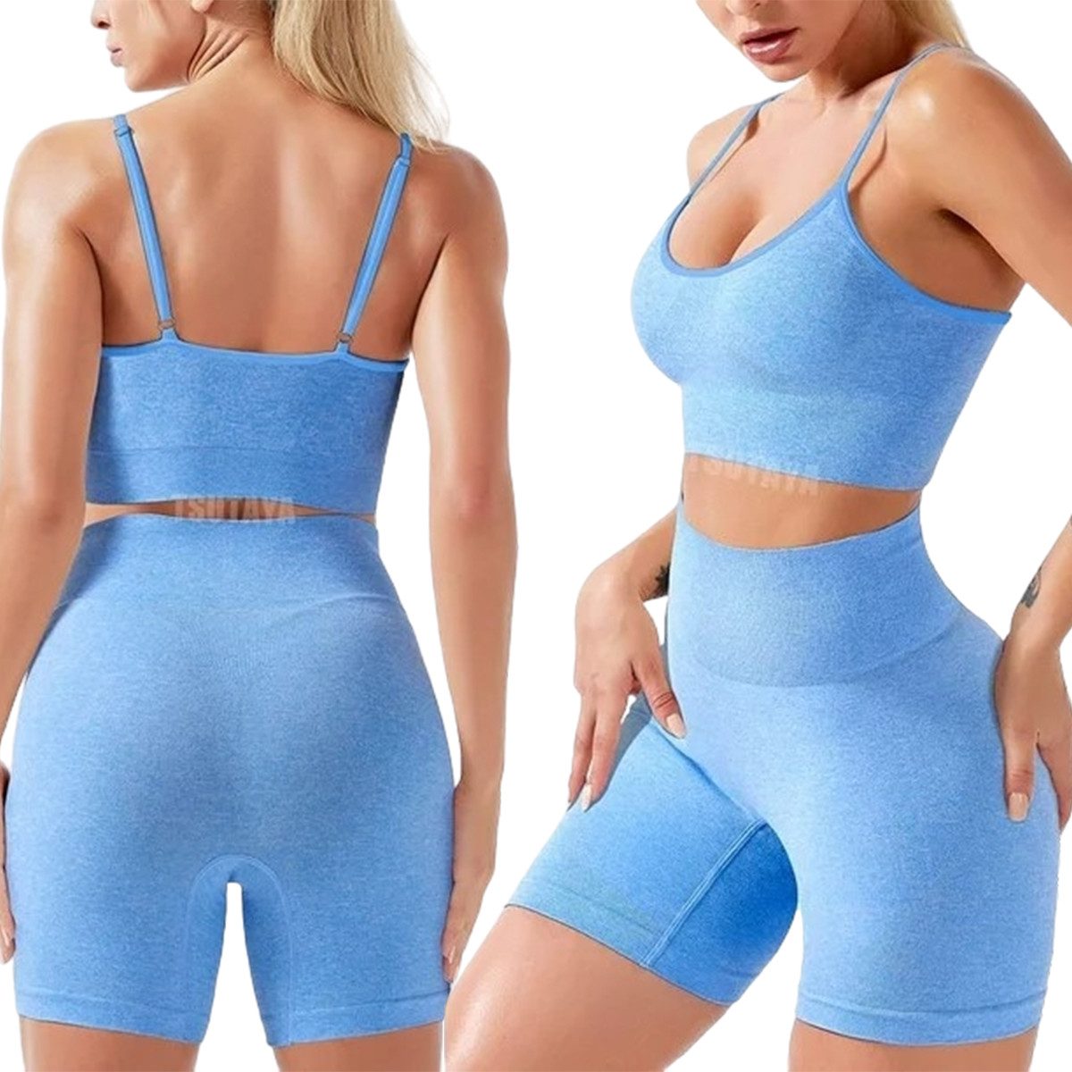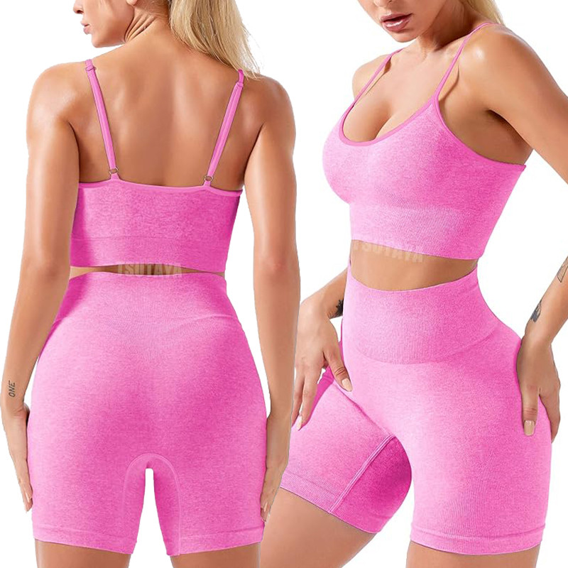 Women's Workout Outfits Women Seamless Yoga Set - 2 Piece Workout Sport Bra with High Waist Shorts